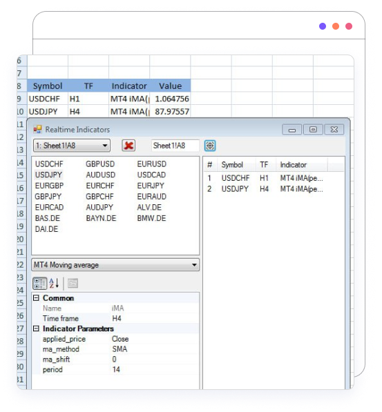 Effortlessly retrieve historical values and pricing data from MT4 directly into Excel.